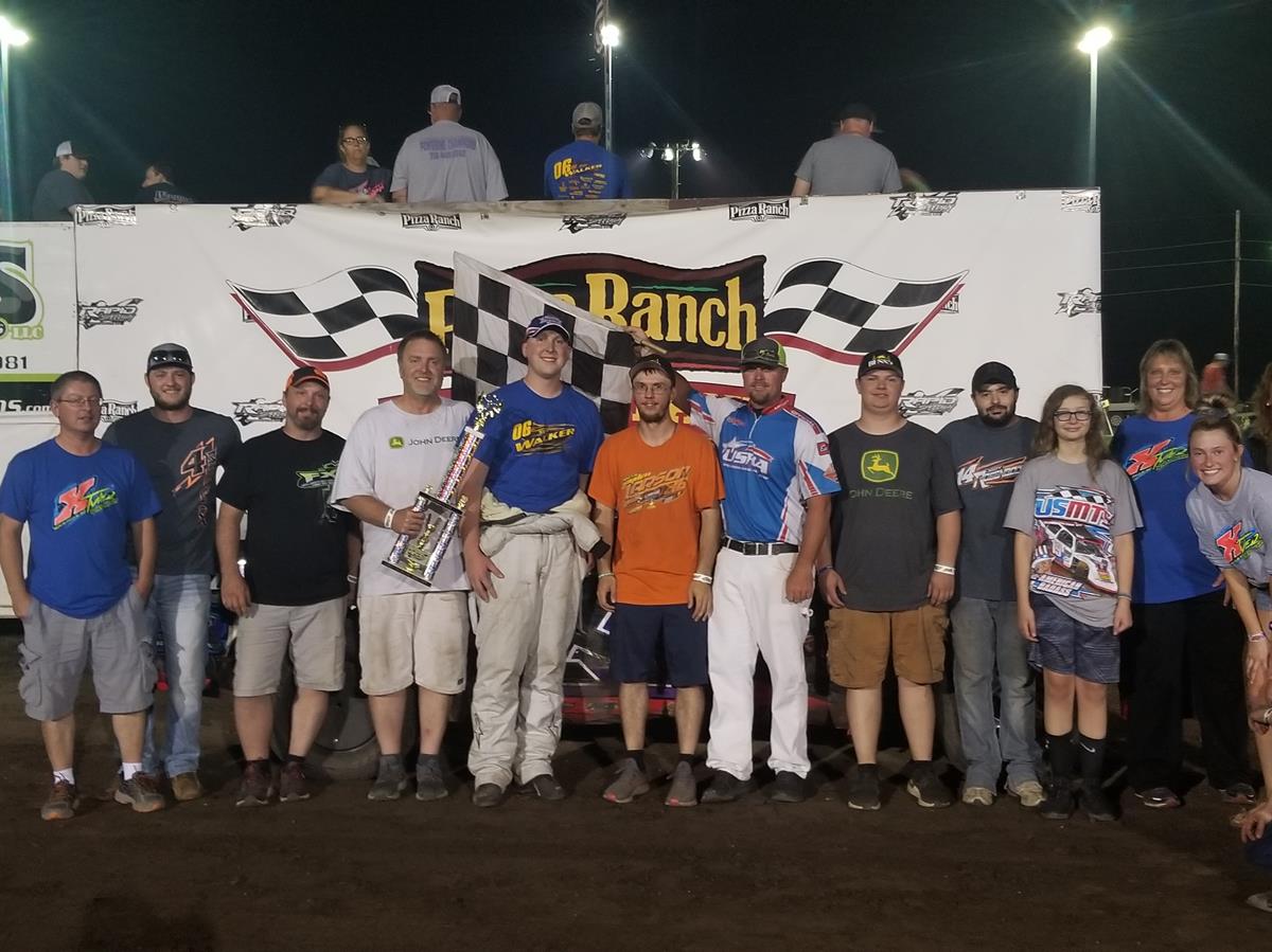 Dustin Larson has been the man to beat as of late in the Precision Auto Body Stock Cars, but starting 12th in the feature gave the other drivers in the field a feeling that they could top the driver from Rushmore, MN. The race would start with Josh Kelderman of Sioux Center grabbing the lead and looking strong out front with Roger Verdoorn behind him. All eyes were on the 5L of Larson though as he quickly made his way into the top 5. On lap 7 he made his way to 2nd and one lap later he took the lead and was off to the races once again. As Larson grabbed the lead away, eyes shifted to the 34k of Colby Klaassen as he was making a charge of his own. With 4 laps remaining Klasssen had climbed to 2nd and a caution flag would give him a chance at Larson late in the race. Klaassen was fast, but just didn’t have enough to get by Larson who would pick up the hat trick making it three wins in a row at Rapid Speedway. “I put the that car wherever I needed to and it just goes,” said Larson. Klaassen took home 2nd ahead of Roger Verdoorn in third. Justin Regnerus charged from 19th to finish 4th ahead of Josh Kelderman. Larson, Klaassen, and Kelderman were the heat winners.