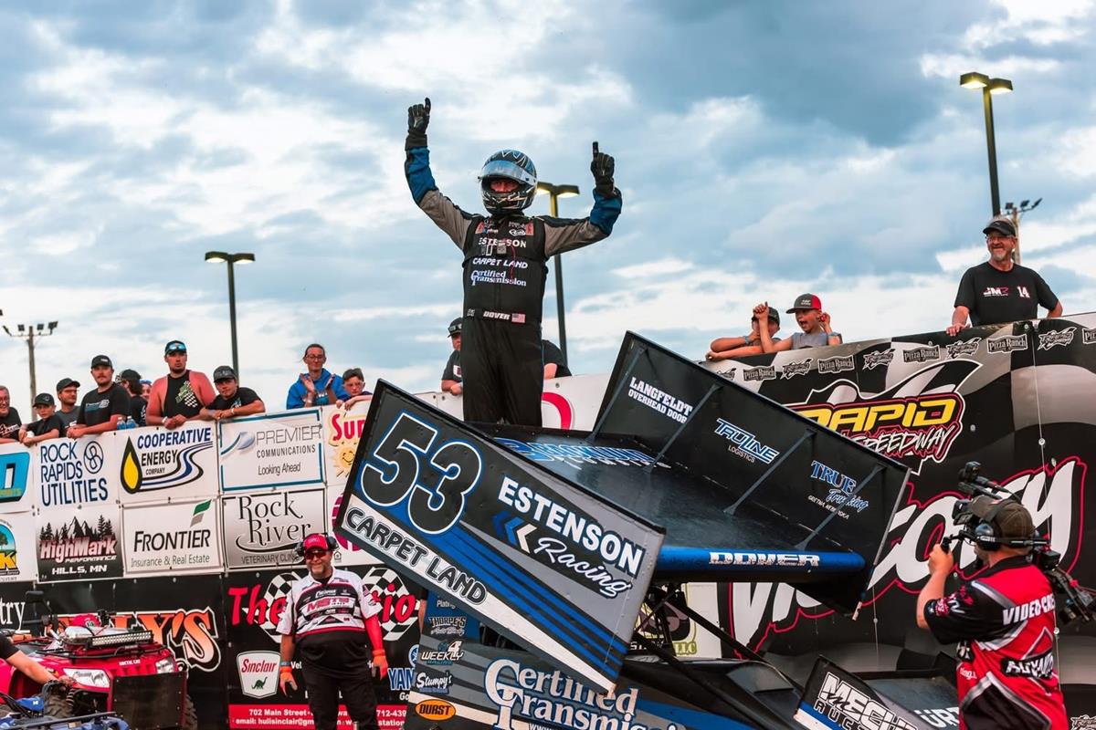 “It feels good to keep the winning streak alive,” the Tim Estenson Motorsports driver said. “The main thing is the confidence is there. Three weeks ago, we should have won at Huset’s. Last week in Aberdeen, we were second and right on the leader. I just feel like the confidence and the momentum is there.”